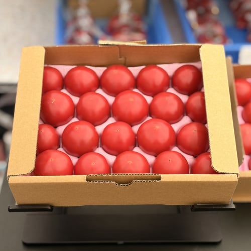 比較的、見た目の良い中玉トマトを箱に入れた商品です。